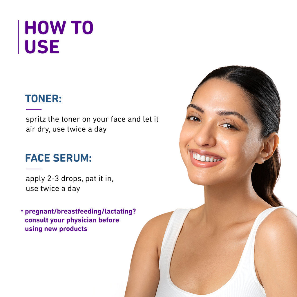 • Together this powerpacked duo works wonders to smoothen your skin texture, clarify and be the brightest spark!