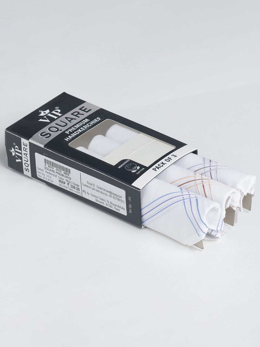 VIP Men's Striped Cotton Assorted Square Premium 02 Handkerchief-Pack of 3
