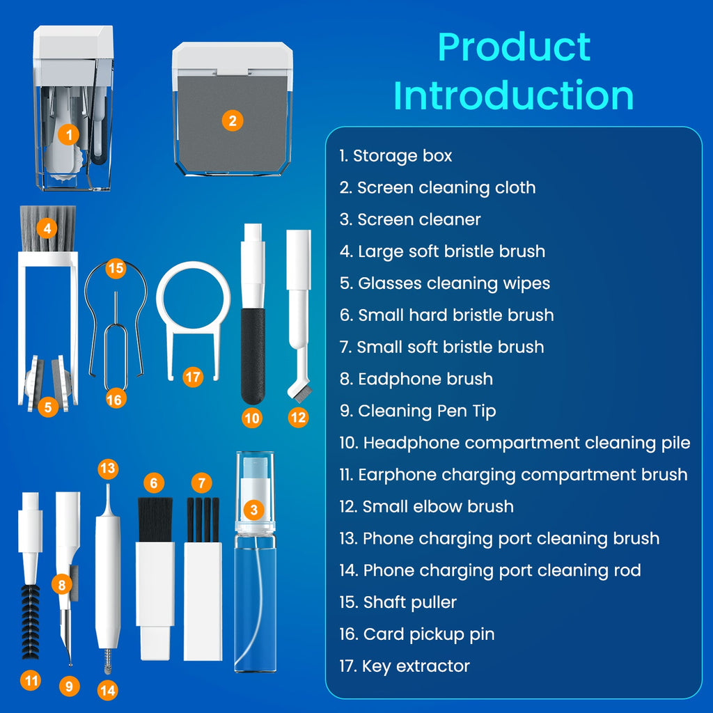 16-in-1 Multi-Gadget Cleaner Kit: Keep all your devices spotless with this all-in-one cleaner kit, designed to deep clean smartphones, laptops, keyboards, earbuds, and camera lenses effortlessly.
