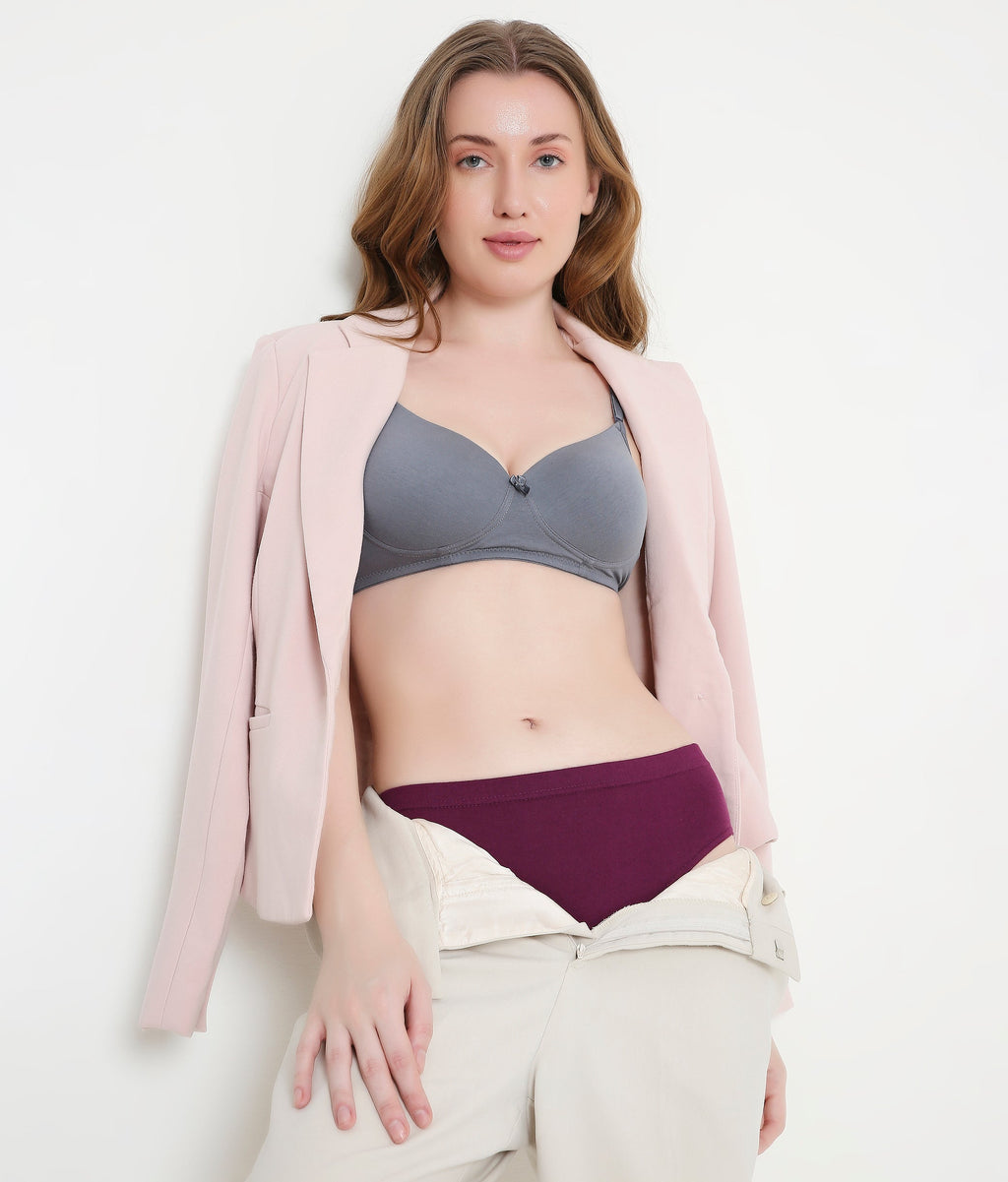 Everyday Comfort Padded Stretchable Cotton T-Shirt Bra - Dark Grey