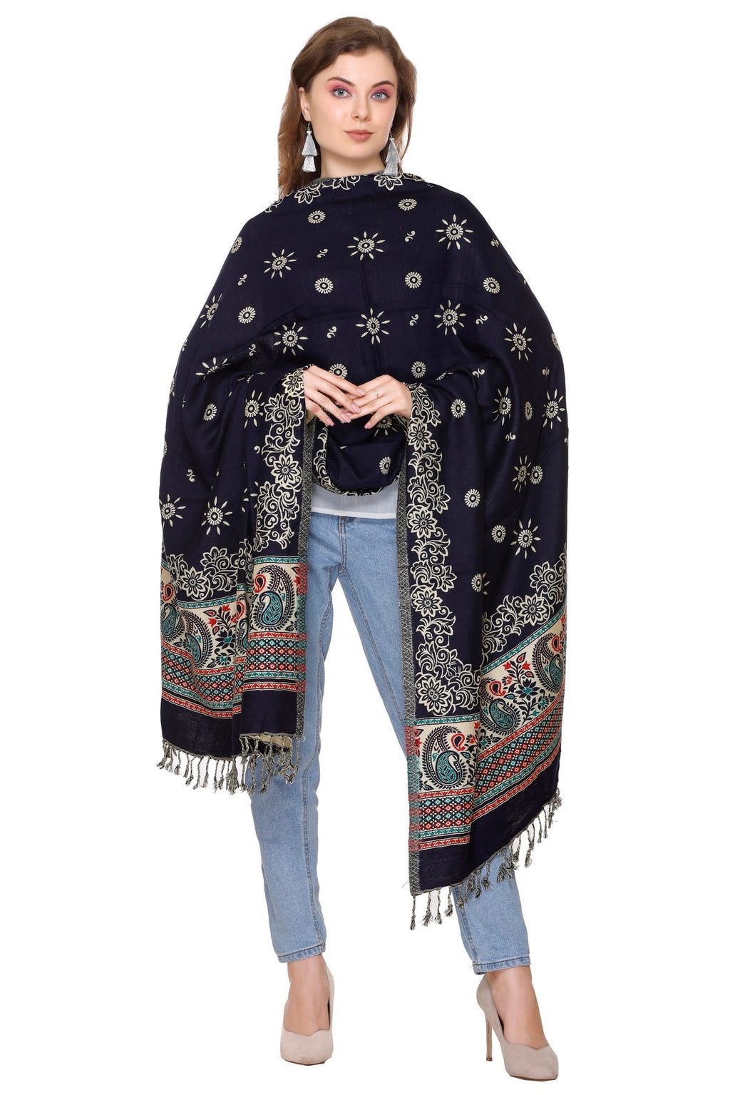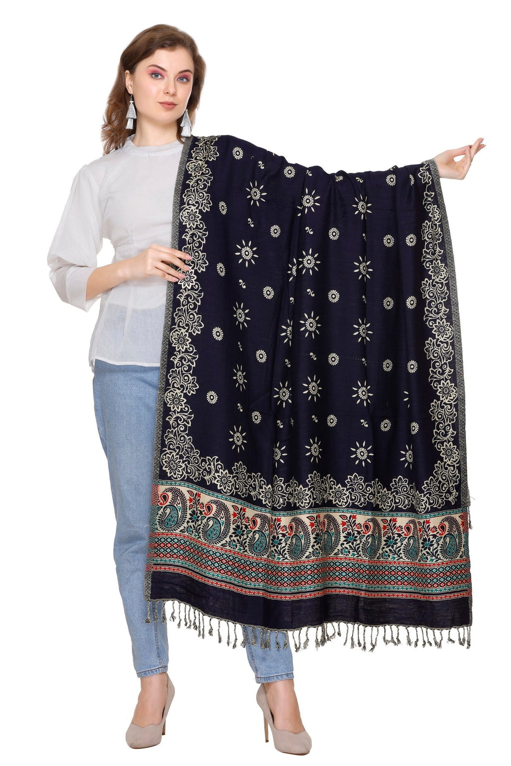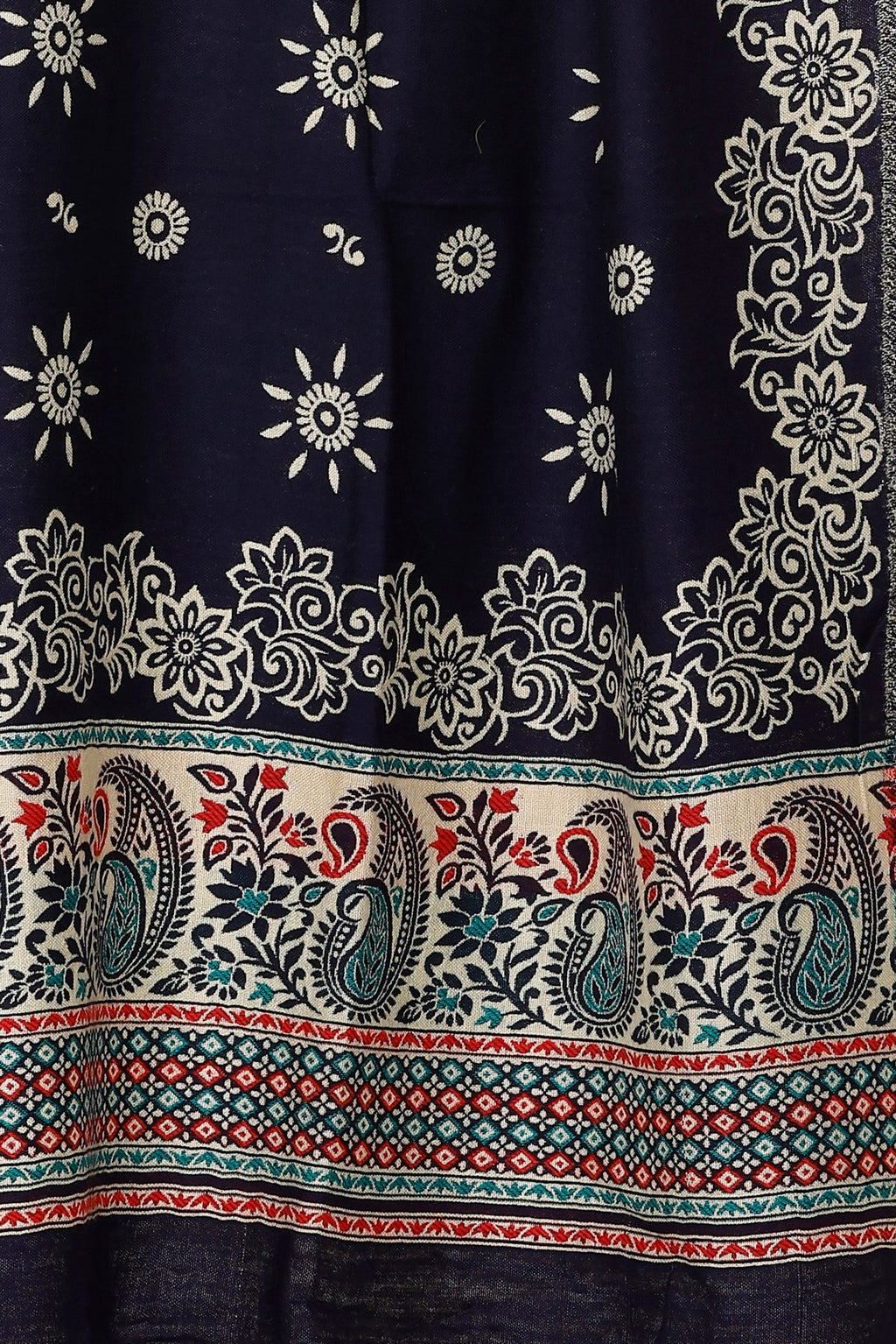 KRITI Floral Border Woollen Black Color Shawl For Women