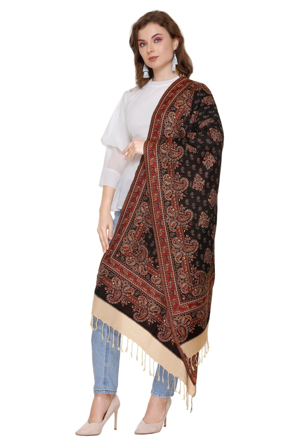 KRITI Kashmiri Design Woollen Black Color Stole For Girl