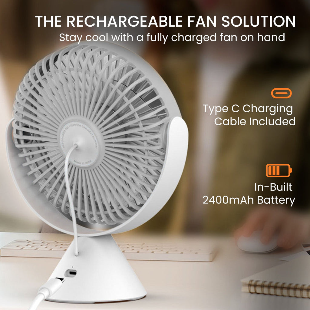 - USB Rechargeable & Battery Powered: Enjoy the convenience of a rechargeable fan with a long-lasting battery that provides up to 4 hours of continuous use on a single charge. The USB charging option ensures you can easily power up the fan anywhere.
