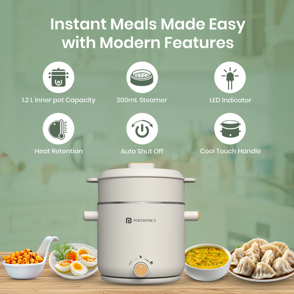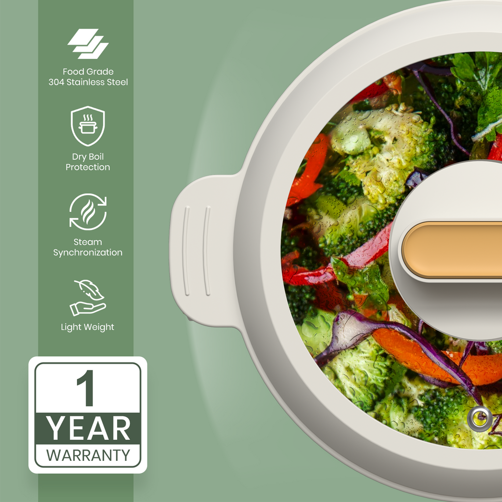 Dual-Function & Compact Design: Combines steaming and boiling functions in a compact, space-saving design, making it perfect for modern kitchens and travel.