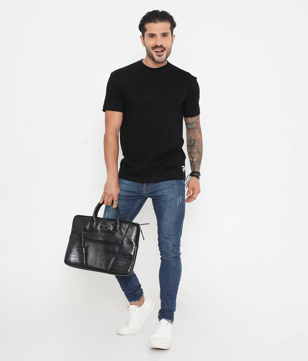 Men Solid Black Leisurewear Essential Cotton Tee - 004