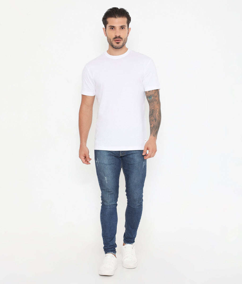 Men's Solid White 004 Leisurewear Essential Cotton Tee