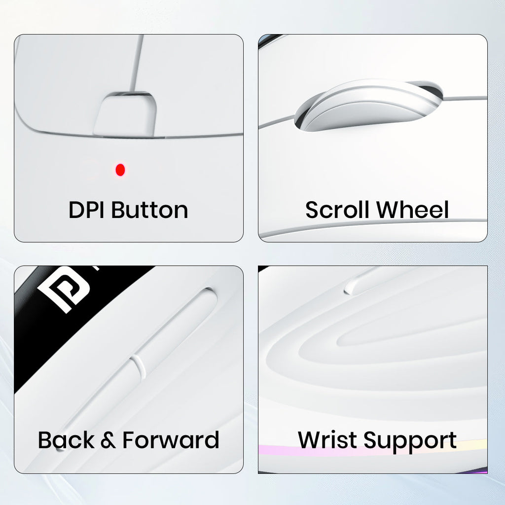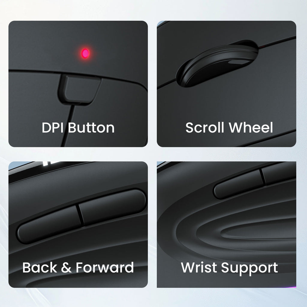 • Smart 6D Button Layout : Equipped with 6 navigation buttons, including left-click, right-click, scroll wheel, DPI switch, and two side buttons for forward/backward browsing. The buttons are ultra-responsive, combining functionality with convenience.
