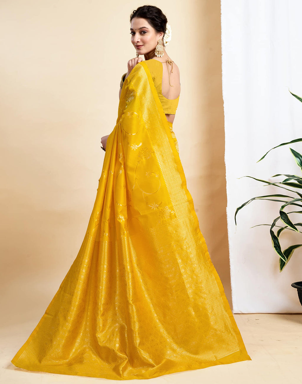 Yellow Silk Woven Banarasi Saree